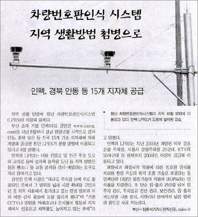 2007년10월 10일 전자신문 "차량번호판인식 시스템 지역 생활방