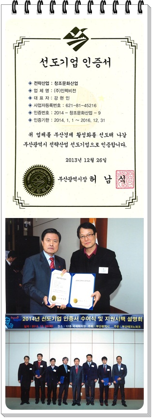 선도기업으로 인증되어 인증서를 수여 받았습니다.