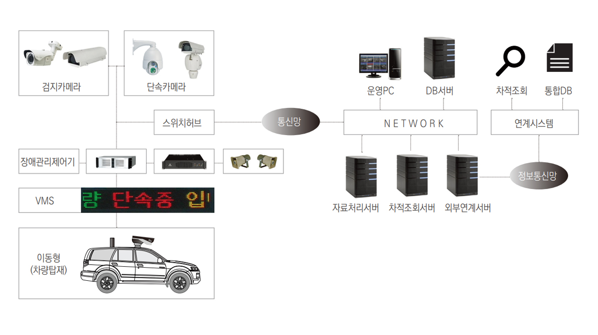 절감하며 단속 현장 여건에 따라 다양하게 구성이 가능함은 물론 좌표 학습을 통하여 단속 효율성을 극대화한 시스템입니다.