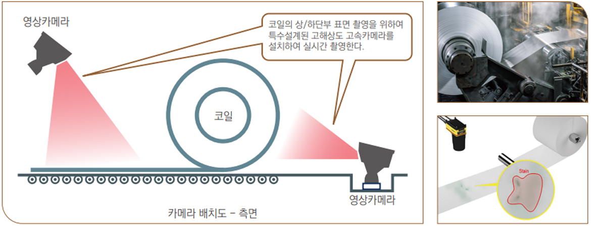 코일 제조 라인의 권취(코일 말기) 단계에서 고속 특수 카메라로 하면 표면 촬영